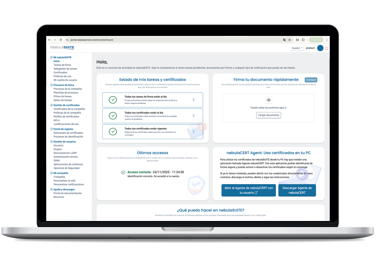 nebulaSUITE: tu plataforma integral de identidad digital y confianza electrónica.
